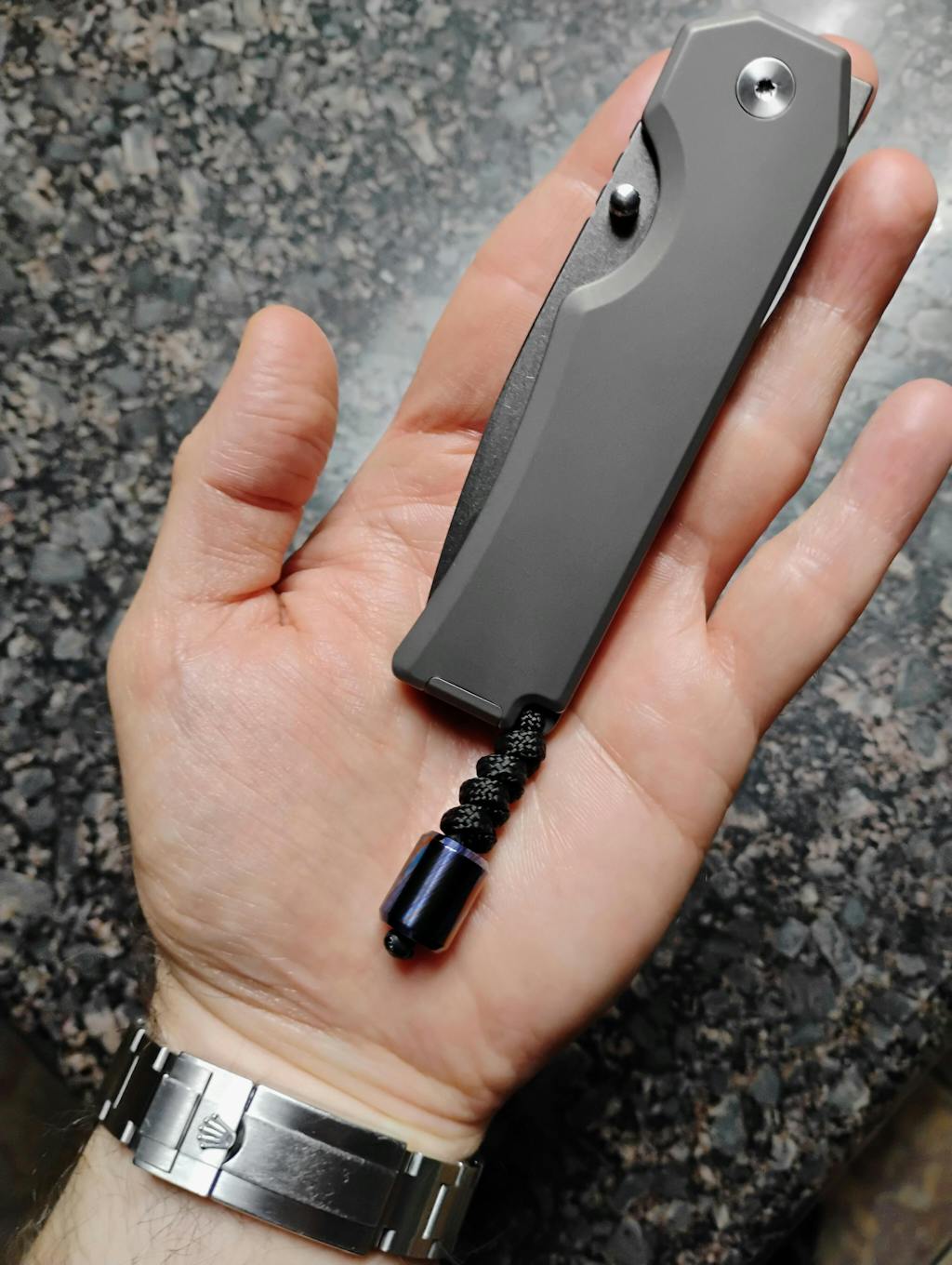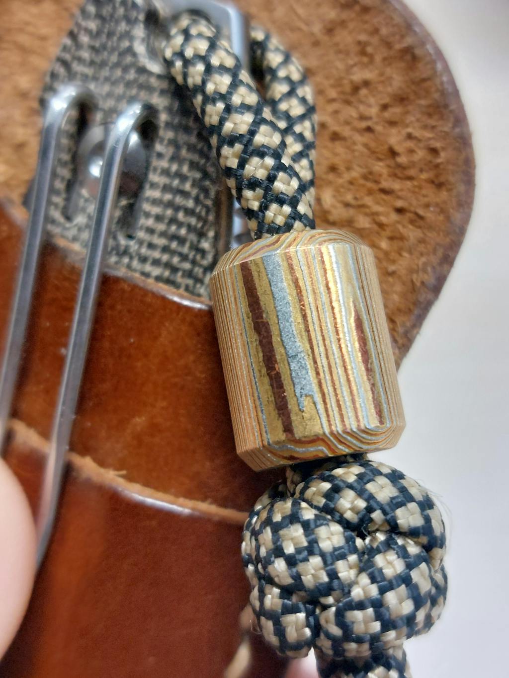 Perfect for dressing up your edc gear, our Damascus lanyard bead has a 7/32" (5.5mm) center diameter that work well with the standard 550 paracord that comes on our pocket tools.