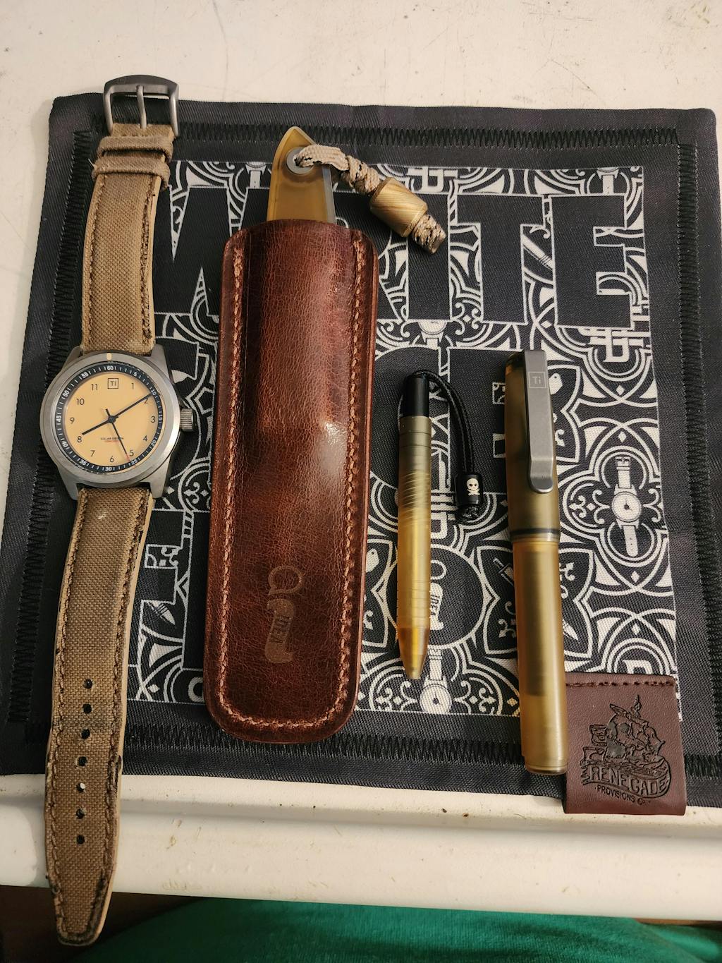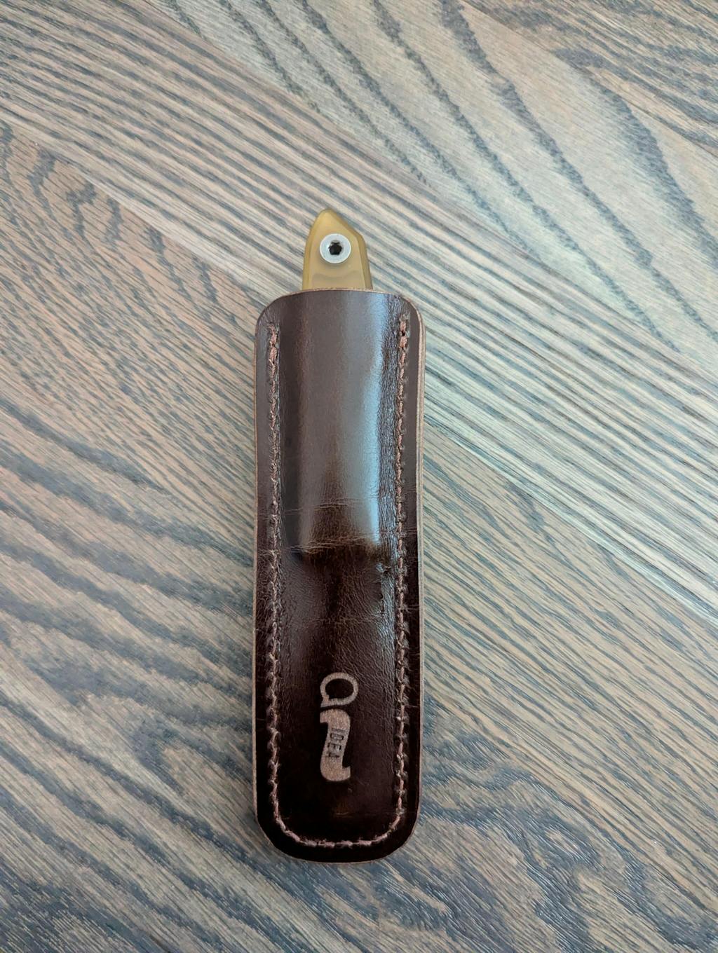 Since our launch of our Lookout fixed blade, we have had requests for a quality leather sheath to accompany it. We looked to the incredibly talented Taylor Cortes, known as Taylored By Cortes! Using full grain leather and the perfectly subtle X clip, this sheath is perfect for the more casual moments, that still require a fixed blade of course! The great thing about full grain leather is the way it breaks in an patinas over time, creating a one of a kind look that gets better with age! The aged one in photos is after 3 months of carry.
