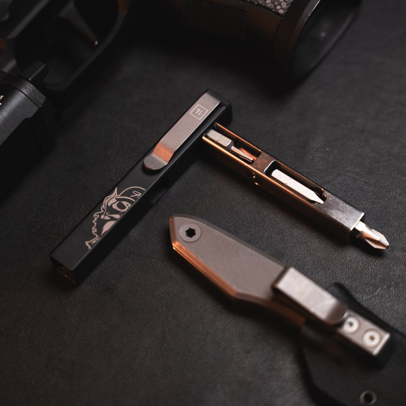 So finally I collaborated with them to make my custom version of their popular pocket tool, the Bit Bar inline. The Bit Bar Inline was already one of the coolest little pocket bit drivers around, but ya put a little of that Flat Black murdered out sweetness on this thing. Now ya got something that will take anyone’s EDC badassery level up a notch or two!
