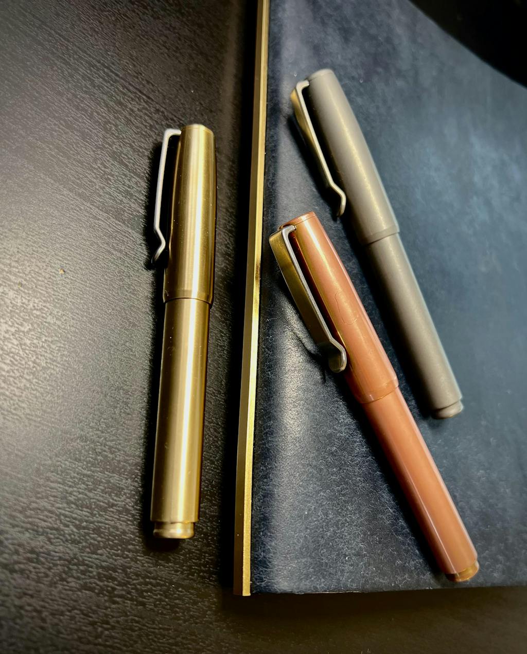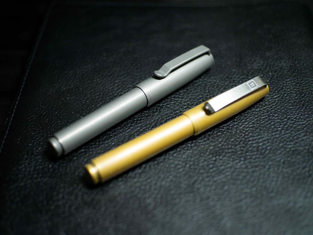 Huge fan of these pens. Own Bronze, Copper and stonewashed Ti. Copper is the favorite as it is heavy. I handle it daily so it actually has no patina after more than a year. If you are a user of “Plotter” notebooks, the Bronze matches beautifully.