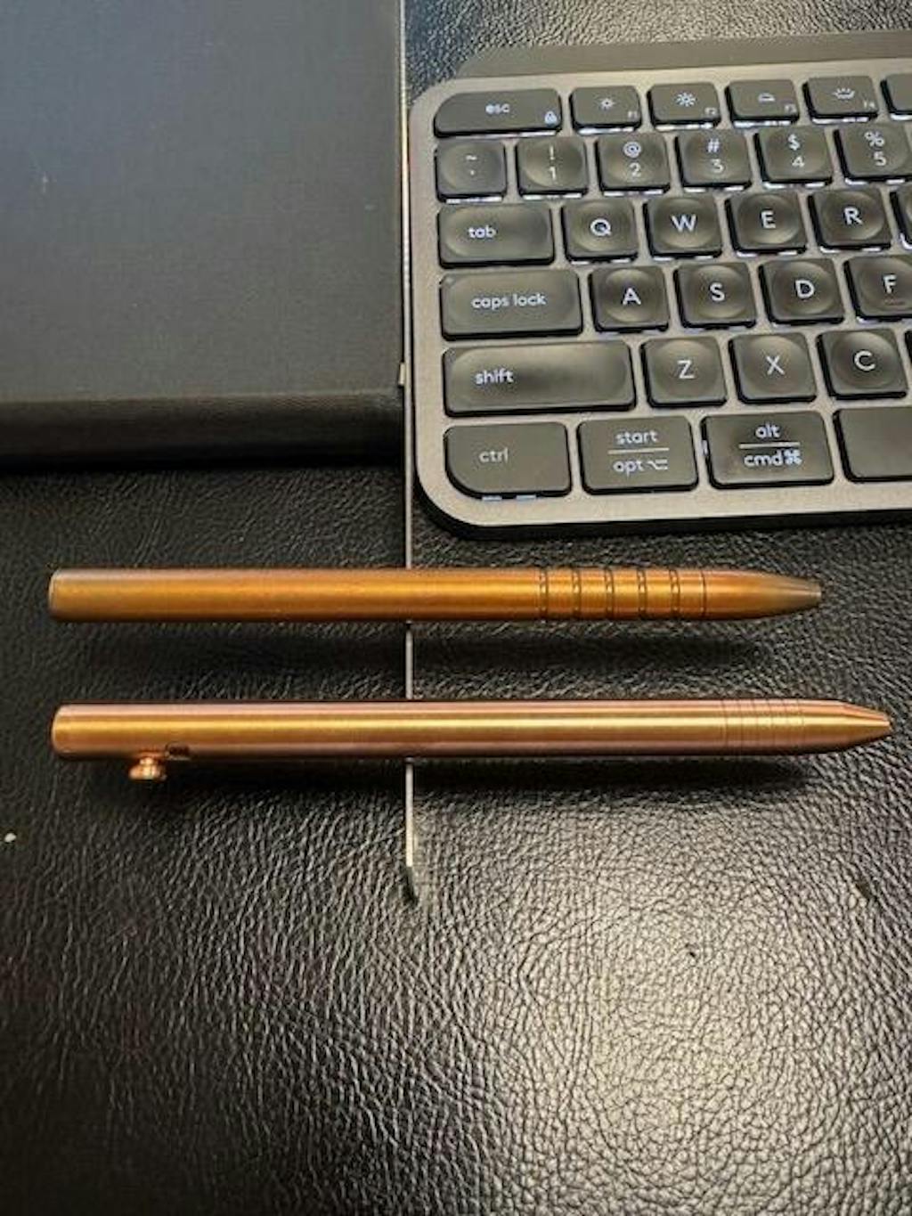 I own the titanium version of this pen and really enjoy it, so I was hoping the heavier model would offer an even better writing experience. While it certainly has the extra weight I was looking for, the balance is unfortunately off.....it’s too top-heavy, which makes it tiring to use for longer writing sessions. I think more thought had gone into the design and weight distribution. I also own a Smooth Precision copper pen which is very well balanced and a pleasure to use. It seems BID has followed Tactile Turn in producing a copper pen that’s simply too top-heavy to be practical. Unfortunately, it’s not usable for me and is going back in the box.