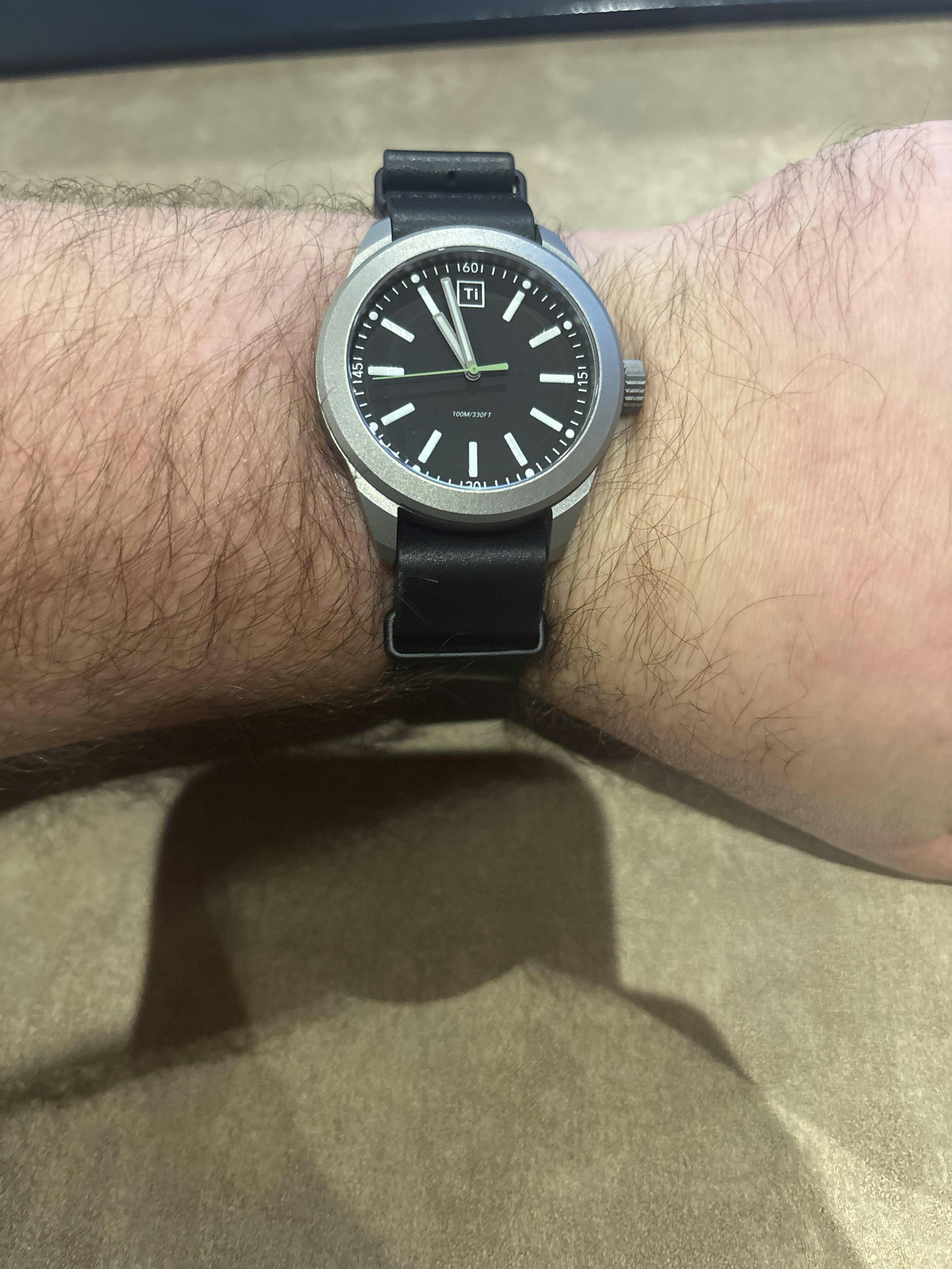 Love the easy to read dial and indices. Lume is fantastic! Strap that came with was too small for me so I got a black horween leather nato strap on it now. Favorite feature is the hybrid VH31 Seiko movement. Super nice sweep