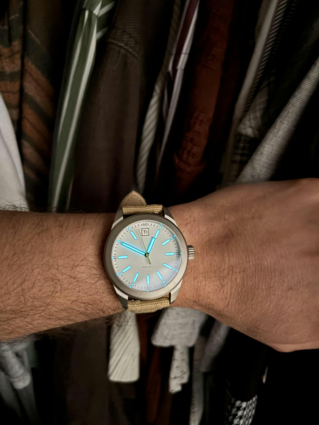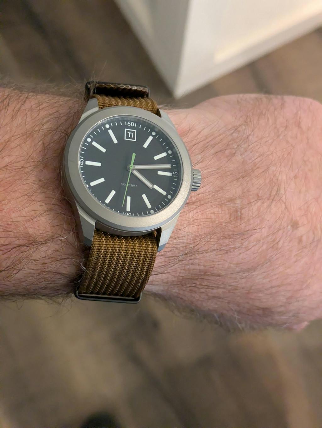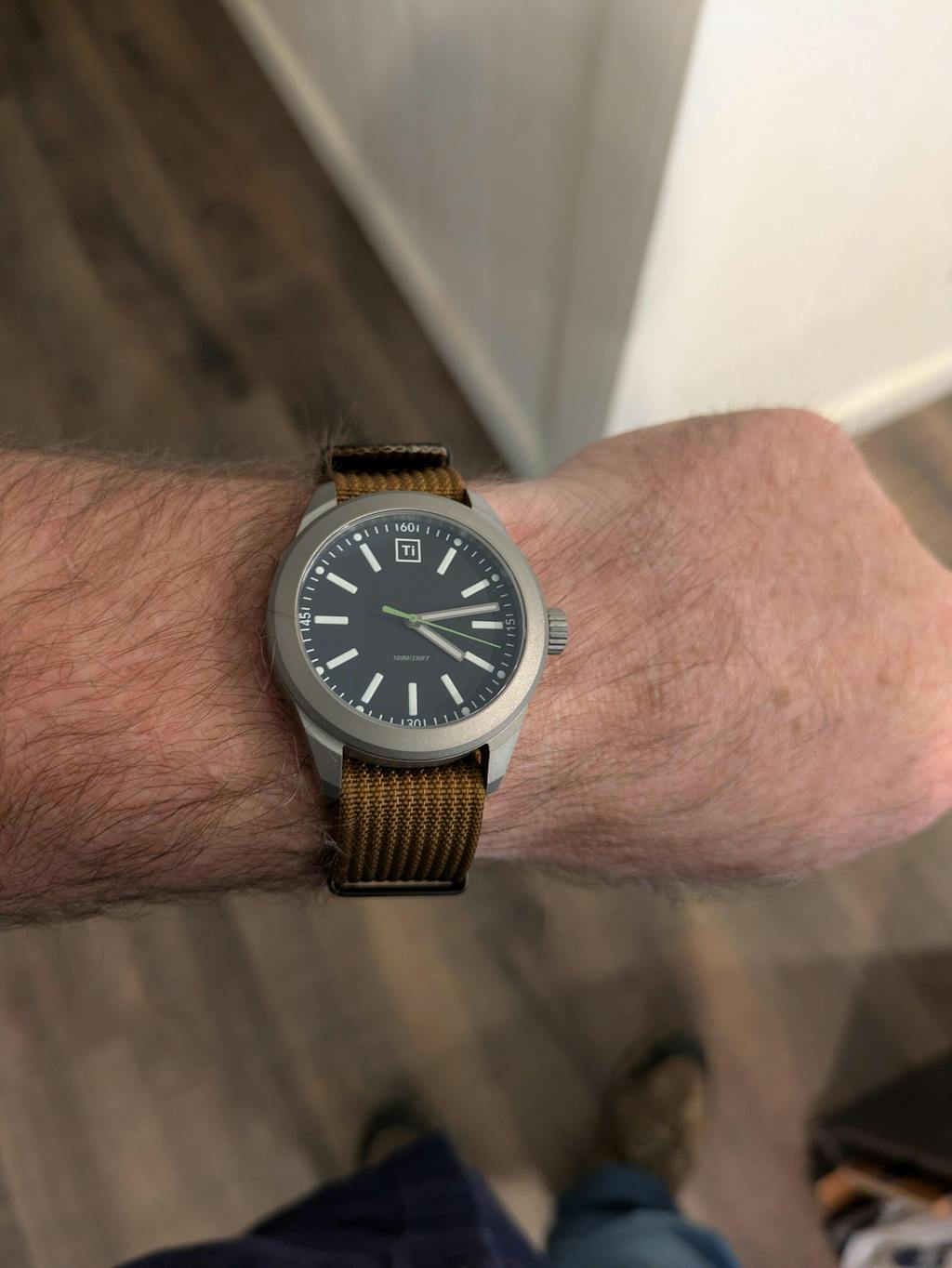 This watch looks and feels great, and is utterly fantastic in its simplicity. Pairs wonderfully with the green nylon NATO strap, which is the perfect shade of green to match the sweeping second hand.