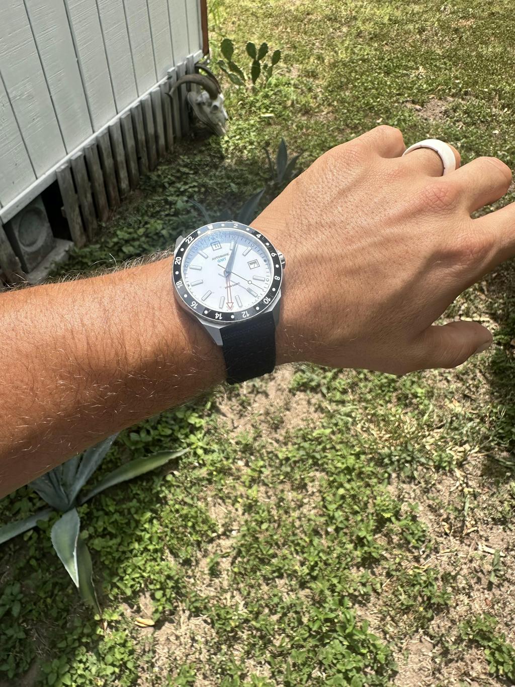 This is a great looking watch, and typically I'm partial to a black dial. but this one is just really nice looking with the matte white dial and polished black bezel. it's super light and fits nicely due to the micro adjustments. only thing I've noticed is the rotor is a bit noisy because it has a unidirectional automatic winding works, so it only winds the watch in one direction and free spins in the other. aside from that, and it's really not that much of a downside, it feels like the perfect true GMT.
