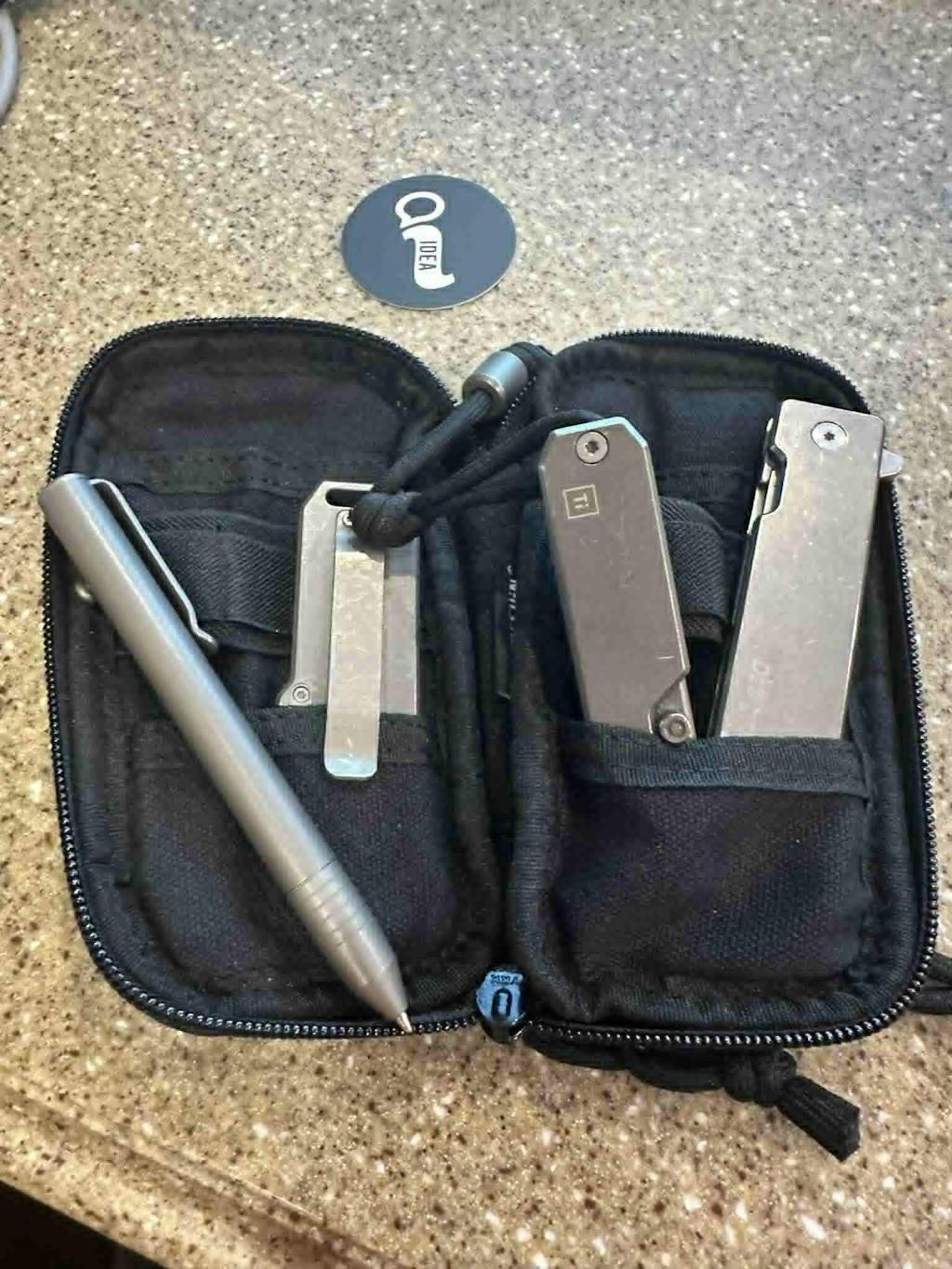 I have my Base Line Bolt Action Pen, CRK Impinda and Tactile Turn Appolo light in an Alpaca Zip Pouch Pro. They all live in my pocket and look great. It's an awesome looking pen that fits this EDC