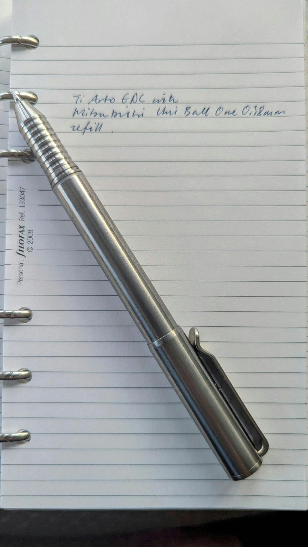 Found myself frequently gravitating towards needing to use pen over mech pencil for scanned documents. My company’s cheap papermate pens have been infuriating me for years now. To reduce the amount of pens I throw across my lab - I tried the Ti Arto. WOW. This goes with me everywhere every day. I didn’t even know I was a pen guy until I received this. This pen and a pilot precise V5 refill have changed my life.