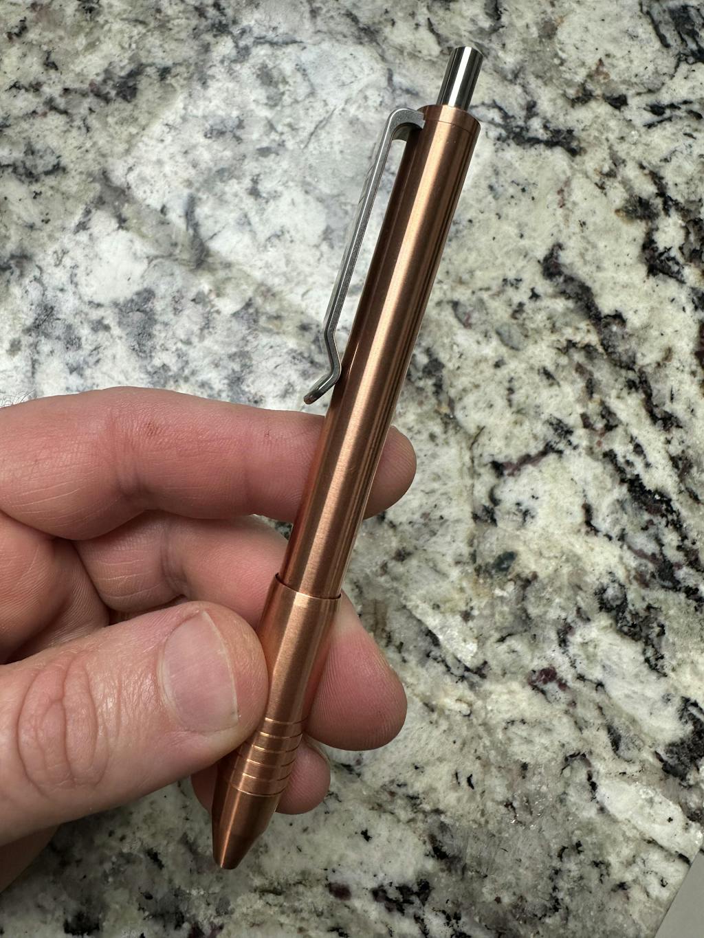 A friend at work turned me onto your products—I really like my new pen! The size and weight are perfect. I went with the copper. My wife was really impressed---I might have to get her one for Mother's Day now! Fast shipping also. Now I just have to make sure I don’t lose it! A bit pricey but you get what you pay for in my opinion. I would highly recommend these if you are like me and appreciate paying a little more for something that will last a long time. I will definitely be looking into your other products.